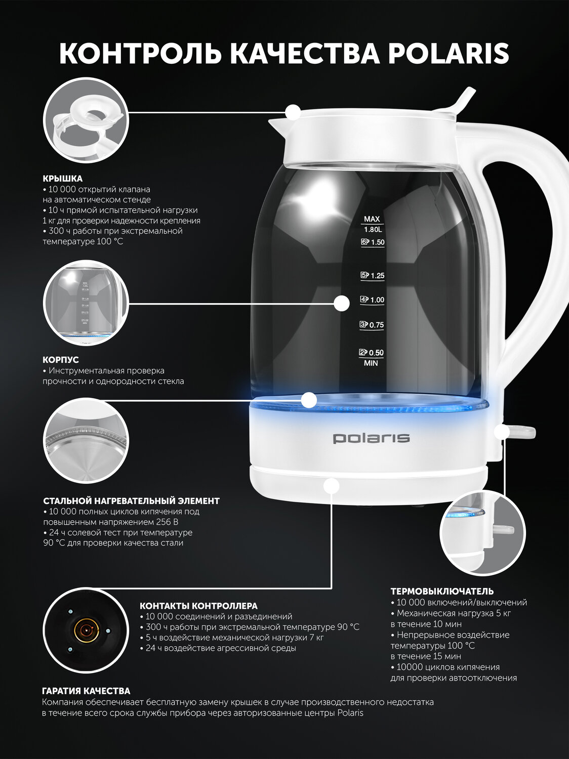Английский контроллер Strix- обеспечивает 15 000 циклов кипячения, что равно 10 годам интенсивного пользования.