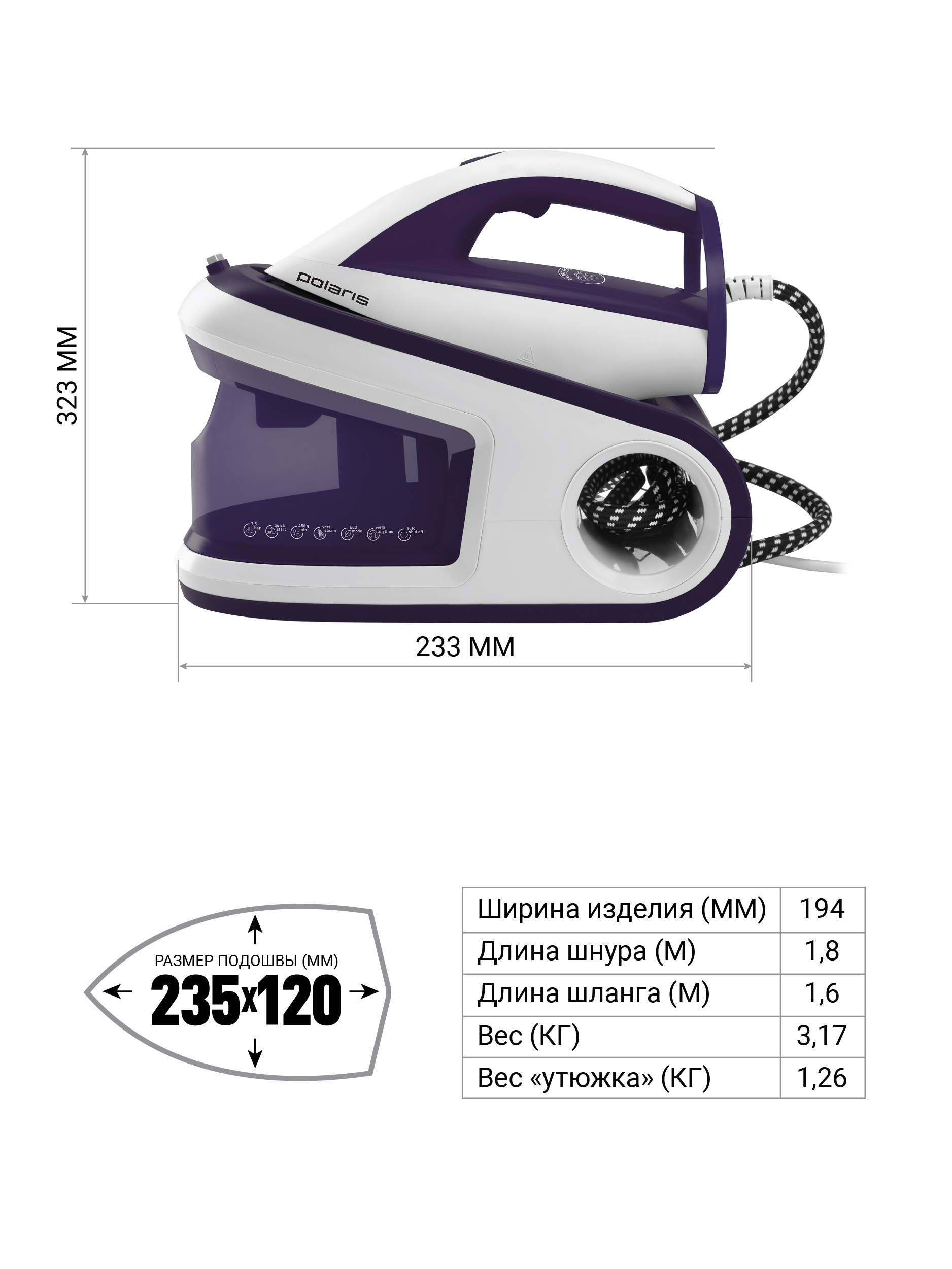- Технические характеристикиМагутнасць, Вт3000Тып падэшвыКерамічнае пакрыццё PRO 5 Ceramic130ФункцииЁсцьСистема защитыАўтаматычнае адключэннеЁсцьГабаритыВага нета, кг3Вага брута, кг4Габарыты кораба, см37x21,4x32,5Колер1,823,5x12