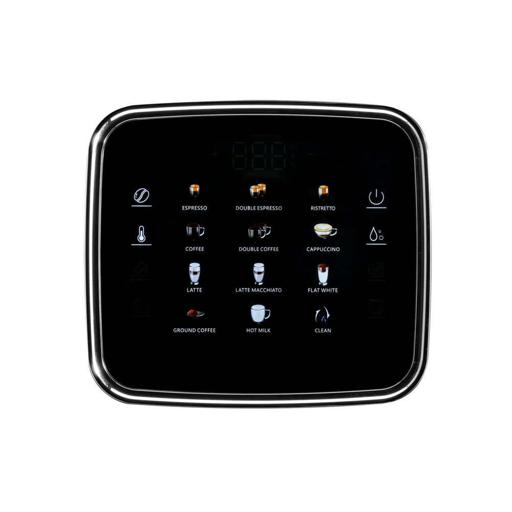 - ГабаритыGewicht netto, kg8 kgBruttogewicht, kg11Kastenabmessungen, cm51,8x30,5x41,5Kabellänge, cm100SpecificationsLeistung, WWassertank1,6 lHopper capacity for beans250 grMaximum cup height13 cmFarbeграфитовыйСвойстваHerausnehmbarer WassertankJaJaSensor-Touch-DisplayJaWiegefläche aus EdelstahlJaSchablonenset zur Verzierung von MilchschaumJa