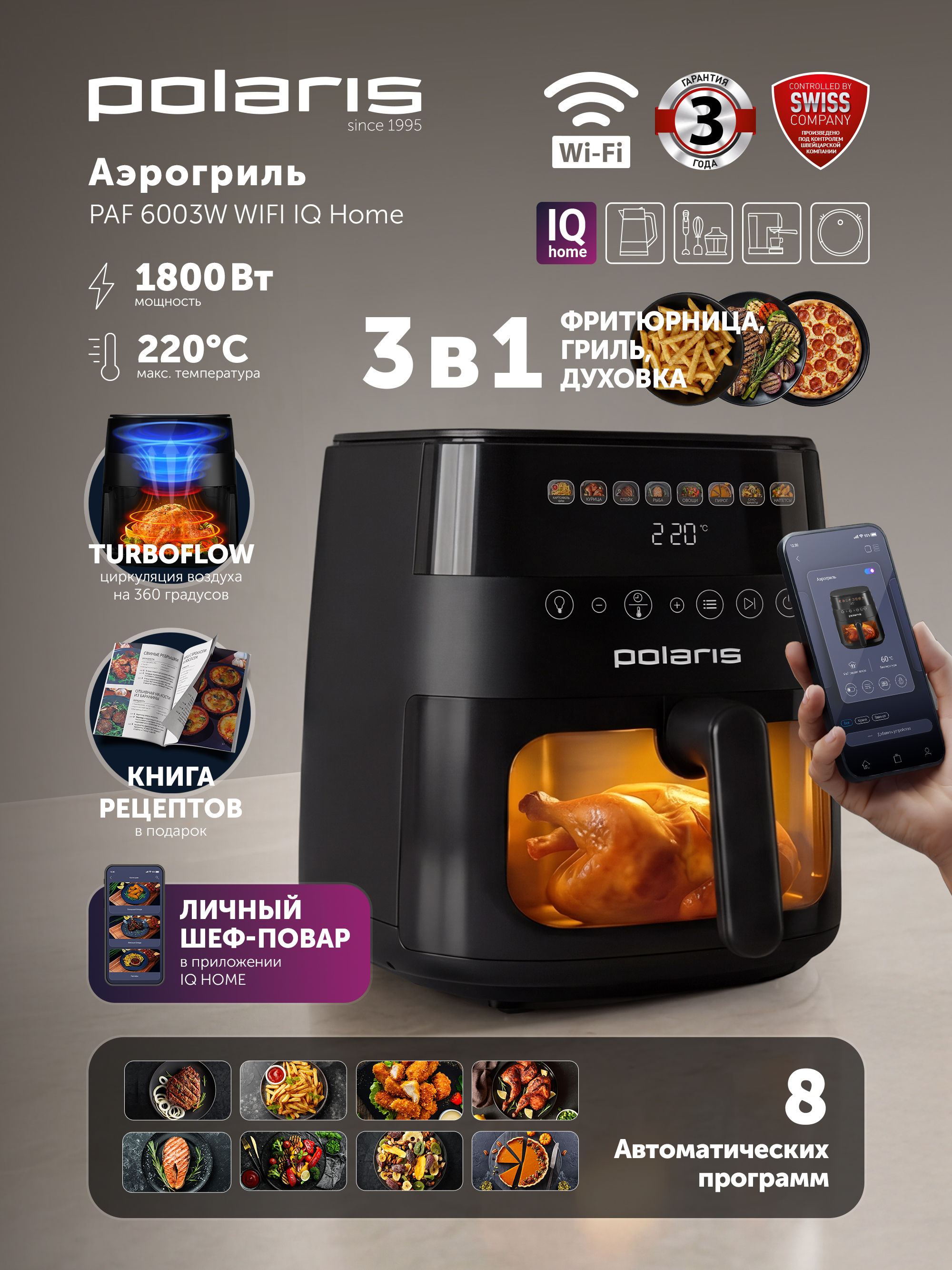 - СвойстваСмартфонды басқаруБарХарактеристкиАвтоматты бағдарламалар саны8Басқару түрісенсорноеЖылыту элементінің түрітэнКүш, В1800Макс. қыздыру температурасы, °C220Мин. қыздыру температурасы, °C35Пісіру бағдарламаларыпирог, запекание, выпечка, пицца, фритюр, грильТаймерді орнатудың максималды уақыты480Тостағанның ішкі жабыныТұрғын үй материалыПластик, МеталлЫдыстың көлемі, л6Қорғаныс жүйелеріӨлшемдеріЖалпы салмағы, кг5Қорап өлшемдері, см42,1x33,6x35,5Сымның ұзындығы, см120