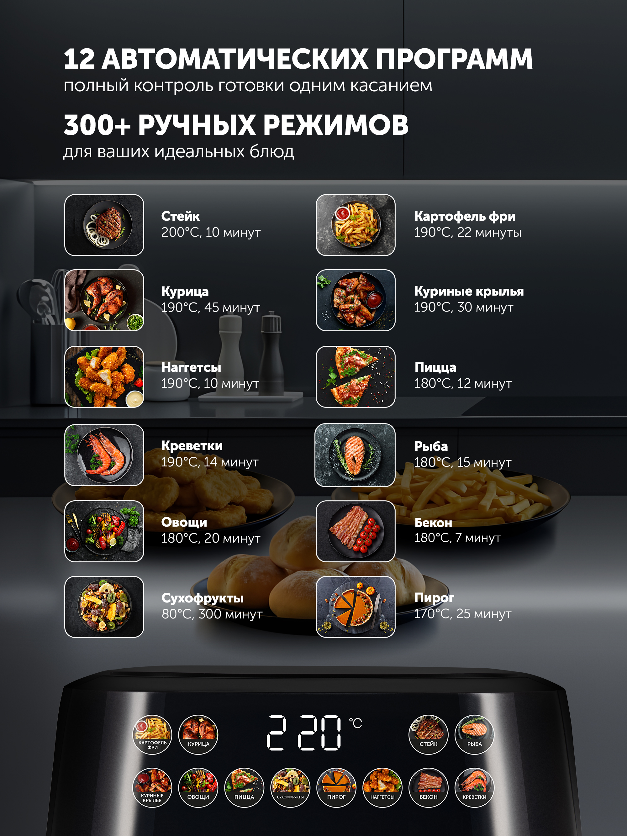 - СвойстваСмартфонды басқаруБарХарактеристкиАвтоматты бағдарламалар саны12Басқару түрісенсорноеЖылыту элементінің түрітэнКүш, В1800Макс. қыздыру температурасы, °C220Мин. қыздыру температурасы, °C35Пісіру бағдарламаларыпирог, запекание, выпечка, пицца, фритюр, грильТаймерді орнатудың максималды уақыты480Тостағанның ішкі жабыныТұрғын үй материалыМеталл, ПластикЫдыстың көлемі, л7,50Қорғаныс жүйелеріӨлшемдеріНетто салмағы, кг4Жалпы салмағы, кг5Қорап өлшемдері, см41,4x35,2x36Сымның ұзындығы, см120
