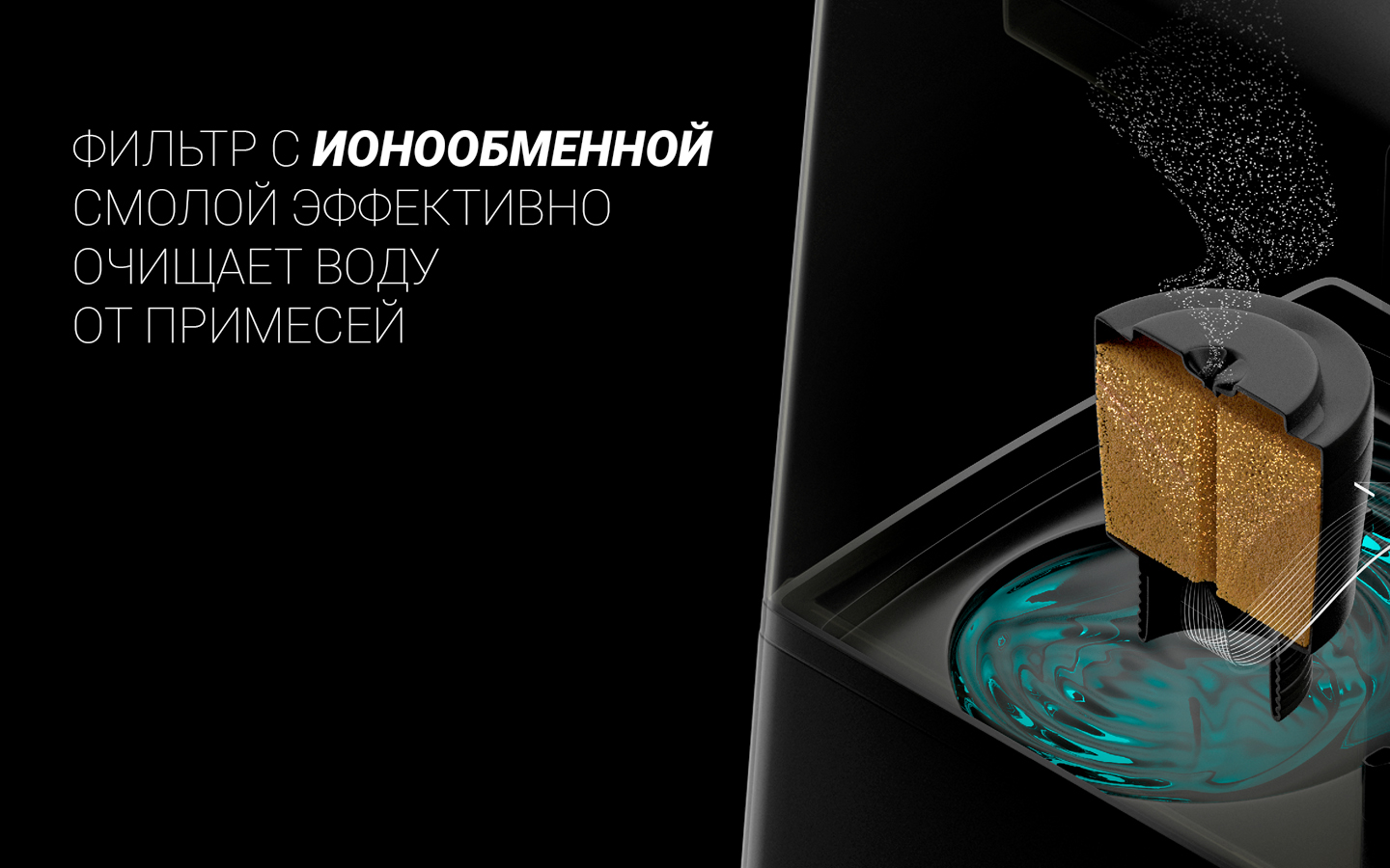 Тиімді суды тазарту үшін ион алмасу шайыры бар сүзгі.