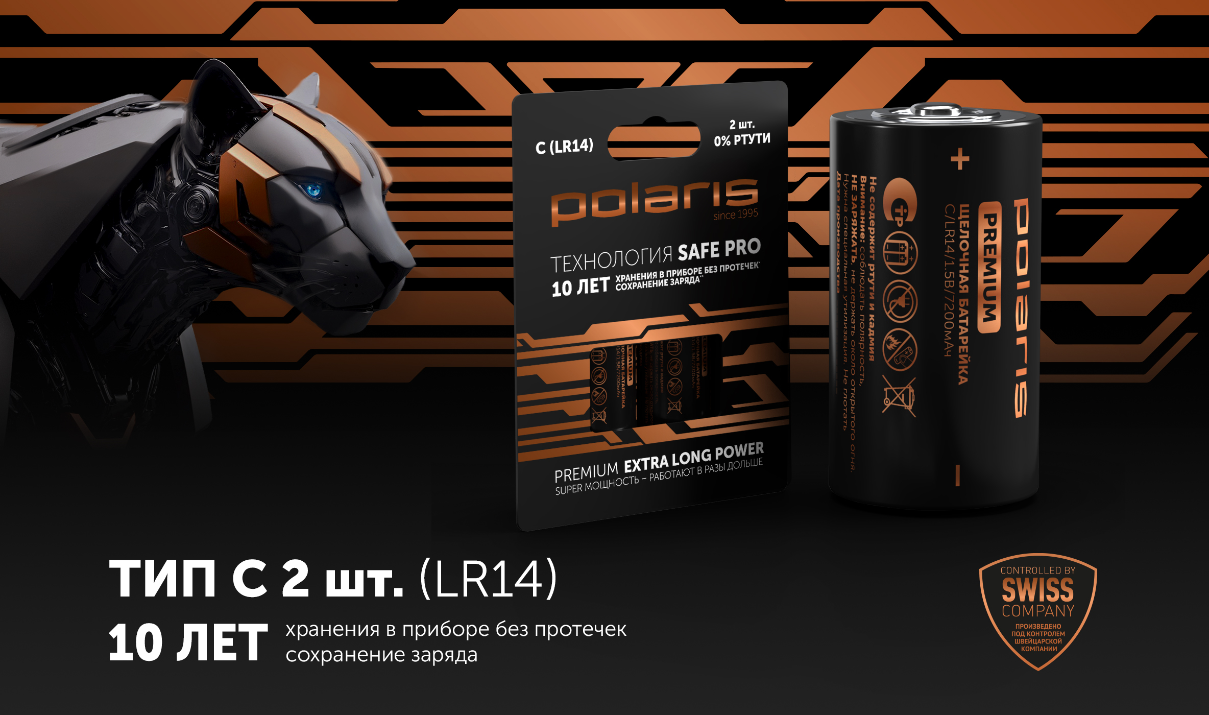 Сілтілік батареялар Polaris PB LR14 (C) (2 дана) Premium