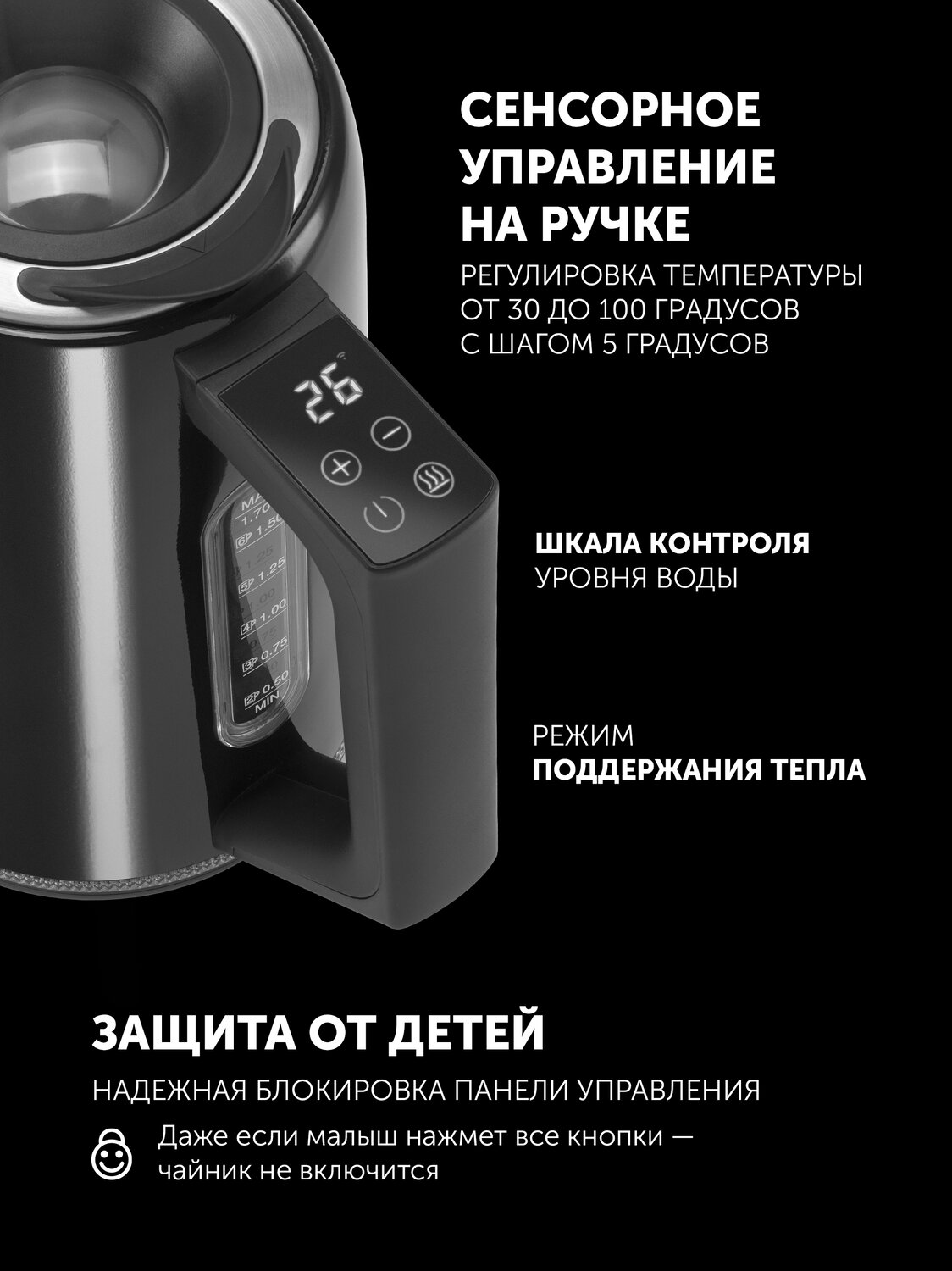 - Технические характеристикиБасқармасы Wi-FiБарКорпустың типіЖоғары сапалы баспайтын болатКөлемі, л1Қуаты, Вт1850-2200Жарық бергіш/су деңгейі шкаласының жарық бергішіБар360° айналмалы корпусБарSTRIX түйіспелі тобыБарWaterway PRO жоғарғы шығанағының технологиясыБарАвтоматты/қолмен ажыратқышБарСенсорноеЕкі жақты масштабБарЖарық бергіші бар сенсорлық басқару панеліБарЖылыту (температураны ұстау) функциясыБарТемпература индкациясымен және жаарық бергішпен СК-дисплейБарТемператураны таңдауБарТермобелгі қыздыру кезінде түсін өзгертедіБарТүсічерныйШусыз қайнау технологиясыБарҚойғыш арқылы қосуБарҚыздыру режимдері15ГабаритыНетто салмағы, кг1Жалпы салмағы, кг1Қорап өлшемдері, см23x19x22,2Сымның ұзындығы, см75