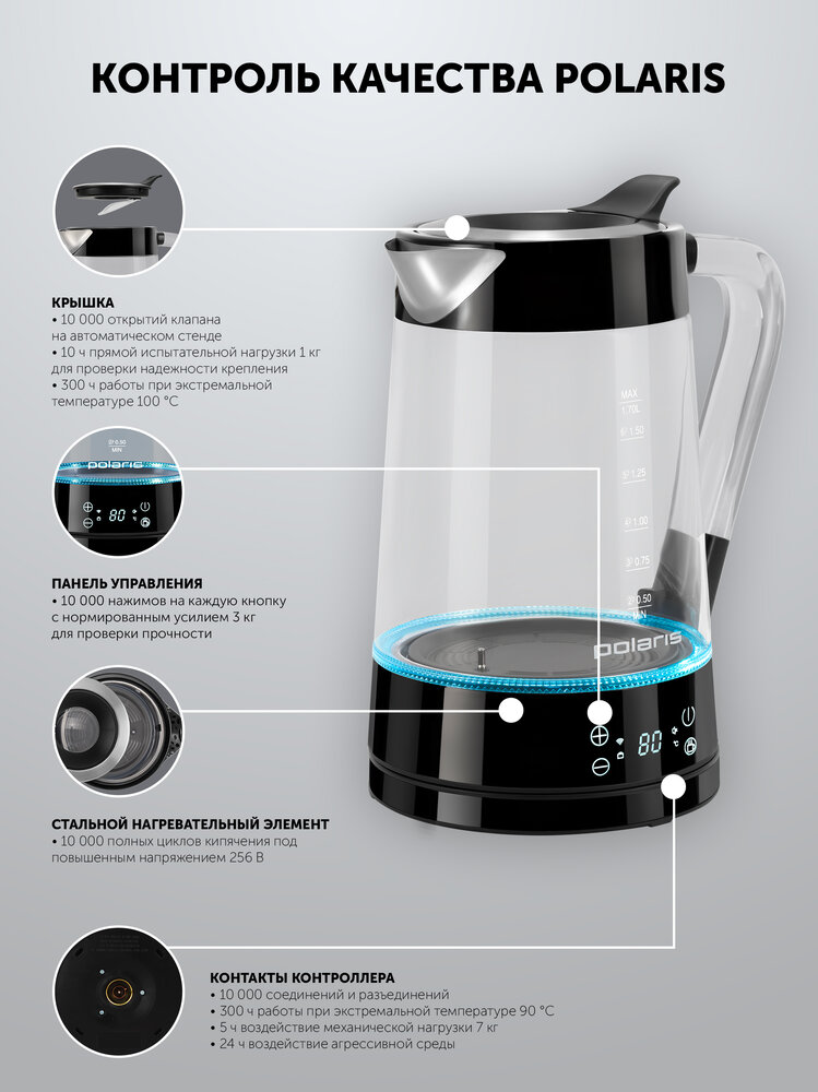 - Технические характеристикиКөлемі, л1Қуаты, Вт1850-2200Жарық бергіш/су деңгейі шкаласының жарық бергішіБарSTRIX түйіспелі тобыБарWaterway PRO жоғарғы шығанағының технологиясыБарЕкі жақты масштабБарЖарық бергіші бар сенсорлық басқару панеліБарЖылыту (температураны ұстау) функциясыБарТемператураны таңдауБарТермобелгі қыздыру кезінде түсін өзгертедіБарТүсічерныйШусыз қайнау технологиясыБарҚойғыш арқылы қосуБарҚыздыру режимдері15ГабаритыНетто салмағы, кг1Сымның ұзындығы, см75