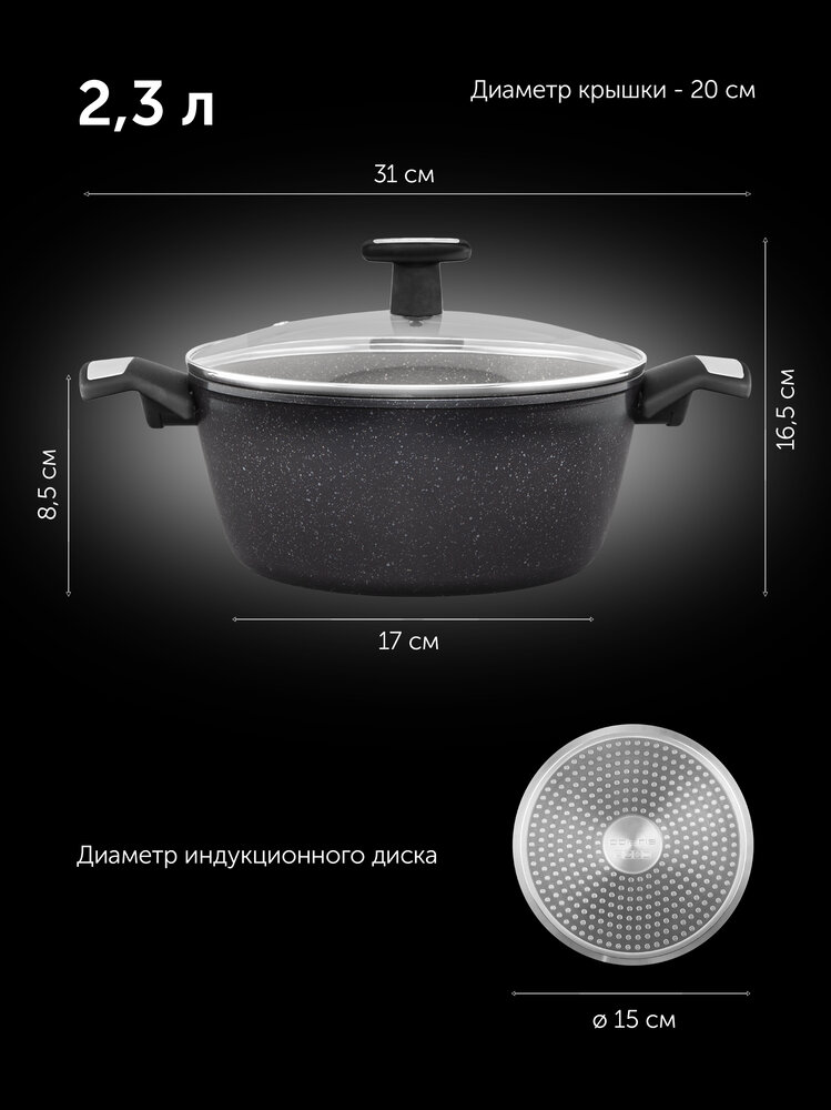 - Технические характеристикиМатериалСоғылған алюминийПлиталардың барлық түріне келедіБарҚызуға төзімді әйнектен жасалған қақпақБарКөлемі, л2,30Плиталар түрлеріИндукцияны қоса алғанда, плиталардың барлық түрлері