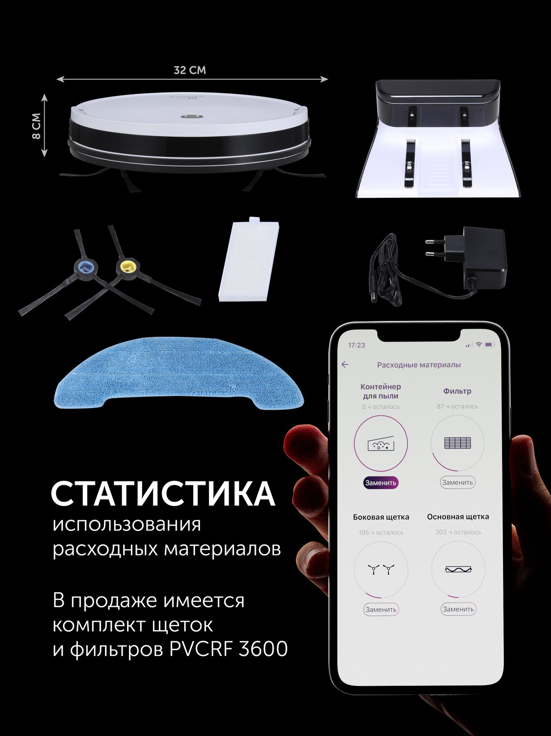 - ГабаритыНетто салмағы, кг3Жалпы салмағы, кг4Қорап өлшемдері, см43,7x12,8x39Түсі1,5ХарактеристикиТазалау түріқұрғақ және дымқыл40Бүйірлік щеткалар2Қуаты, Вт40ТүсіБелыйСвойстваБарБөлмеде бағдарлануға арналған инфрақызыл белгіштерБарНЕРА сүзгісіБарЖиһаздың астын жинауға ыңғайлылық үшін жазық корпусБарБазаға автоматты қайтуБарТолығымен автоматты жинауБарАмортизациялайтын доңғалақтарБарЫлғалды тазалауБарРасписание уборкиБарТиімді жинауға арналған бүйірлік щеткаларБарФункция "найди меня"Бар