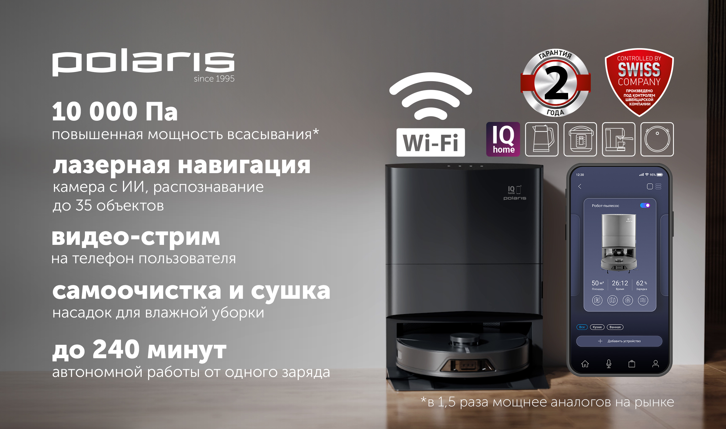 - ГабаритыНетто салмағы, кг16Жалпы салмағы, кг19Қорап өлшемдері, см43,5x39,8x34,7ХарактеристикиТазалау түрісухая, влажная, комбинированная65Бүйірлік щеткалар2Қуаты, Вт65ТүсіСвойстваБарБөлмеде бағдарлануға арналған ультрадыбыстық белгіштерБарБөлмеде бағдарлануға арналған инфрақызыл белгіштерБарНЕРА сүзгісіБарЖиһаздың астын жинауға ыңғайлылық үшін жазық корпусБарБазаға автоматты қайтуБарТолығымен автоматты жинауБарАмортизациялайтын доңғалақтарБарВиртуалды қабырғаБарДыбыстық сүйемелдеуБарЛазерная и гироскопическая навигацияБарЫлғалды тазалауБарОграничение зоны уборкиБарОтправка в точку на картеБарРасписание уборкиБарСохранение картыБарТиімді жинауға арналған бүйірлік щеткаларБарФункция "найди меня"БарҮй-жай картасын құруБар