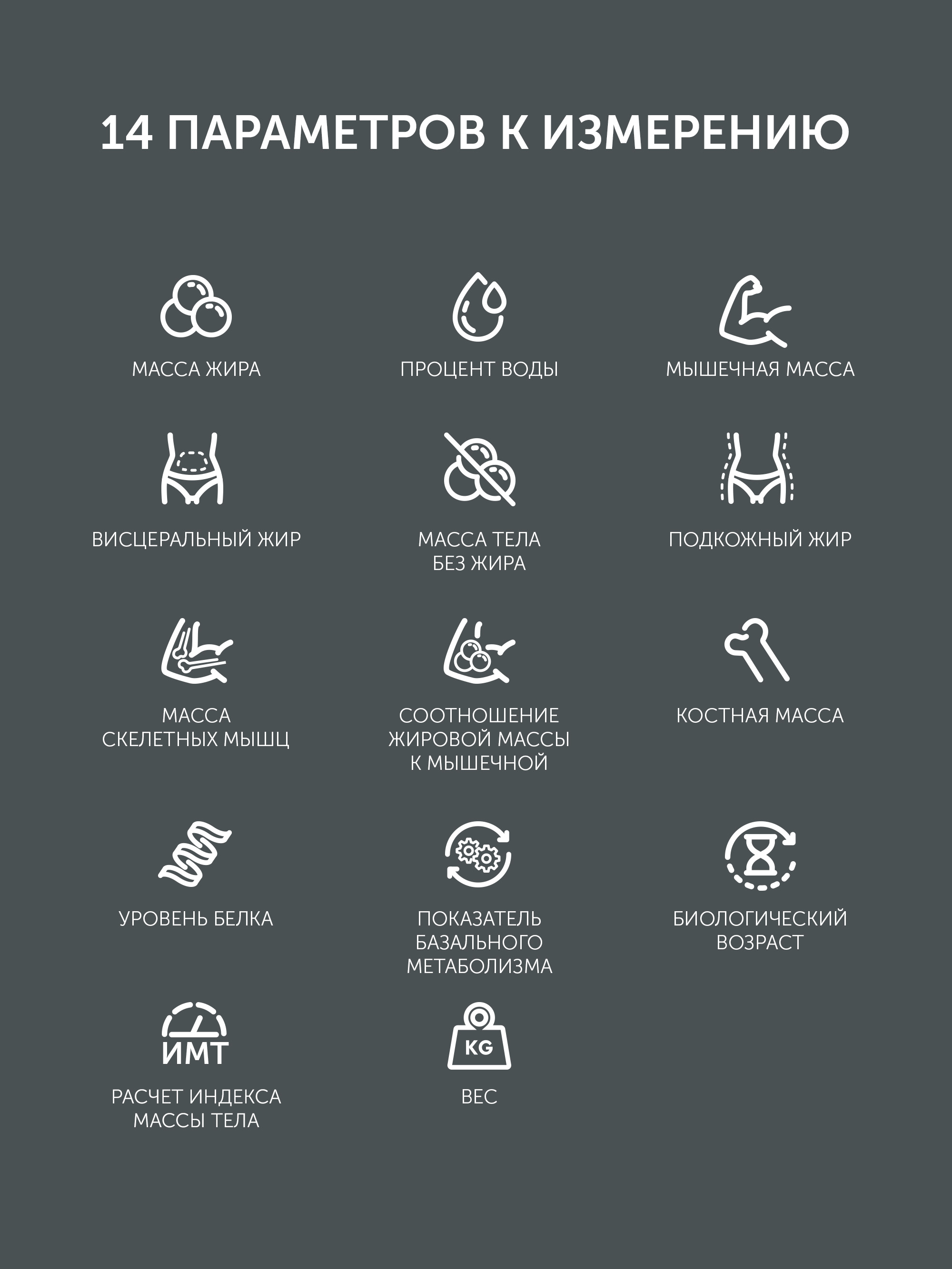 - Технические характеристикиСалмақтар типіПлатформа материалыӘйнек, ПластикBT 4.0 порты арқылы OS/Android синхронизациялау, Polaris Bodyfit тегін қосымшасы, жүктеу үшін қолжетімдіБарBMI коэффициентін, май массасын өлшеуБарАғзадағы судың, майдың, бұлшықет пен сүйек массасының деңгейін өлшеуБарБатарейкалар жиынтығыменБарКең платформаБарНәтижені автоматты нөлдеуБарСалмақты максималды дәл анықтауға арналған сенсорлық жүйеБарТүсібелыйУльтра жұқаБарИндикацииБатареялар жұмысының индикациясыБарМаксималды салмақты арттыру индикациясыБарГабаритыНетто салмағы, кг1Қорап өлшемдері, см0x0x0