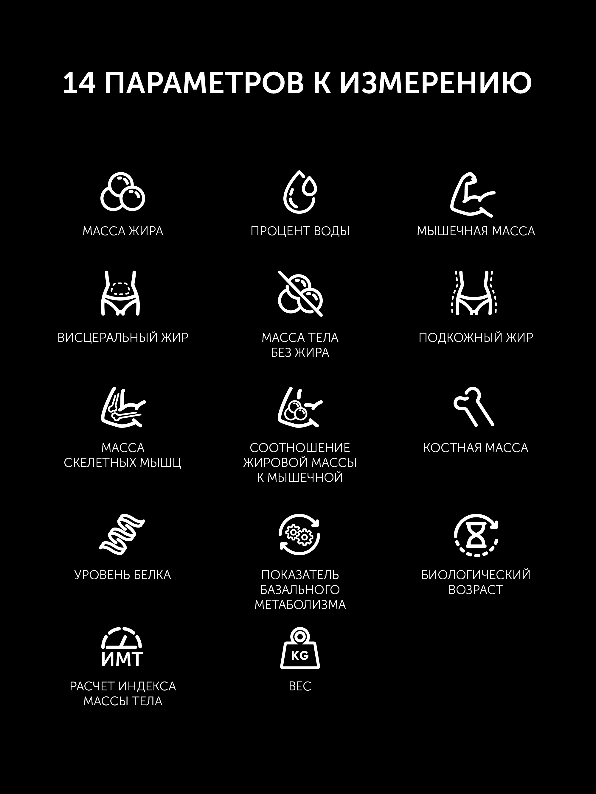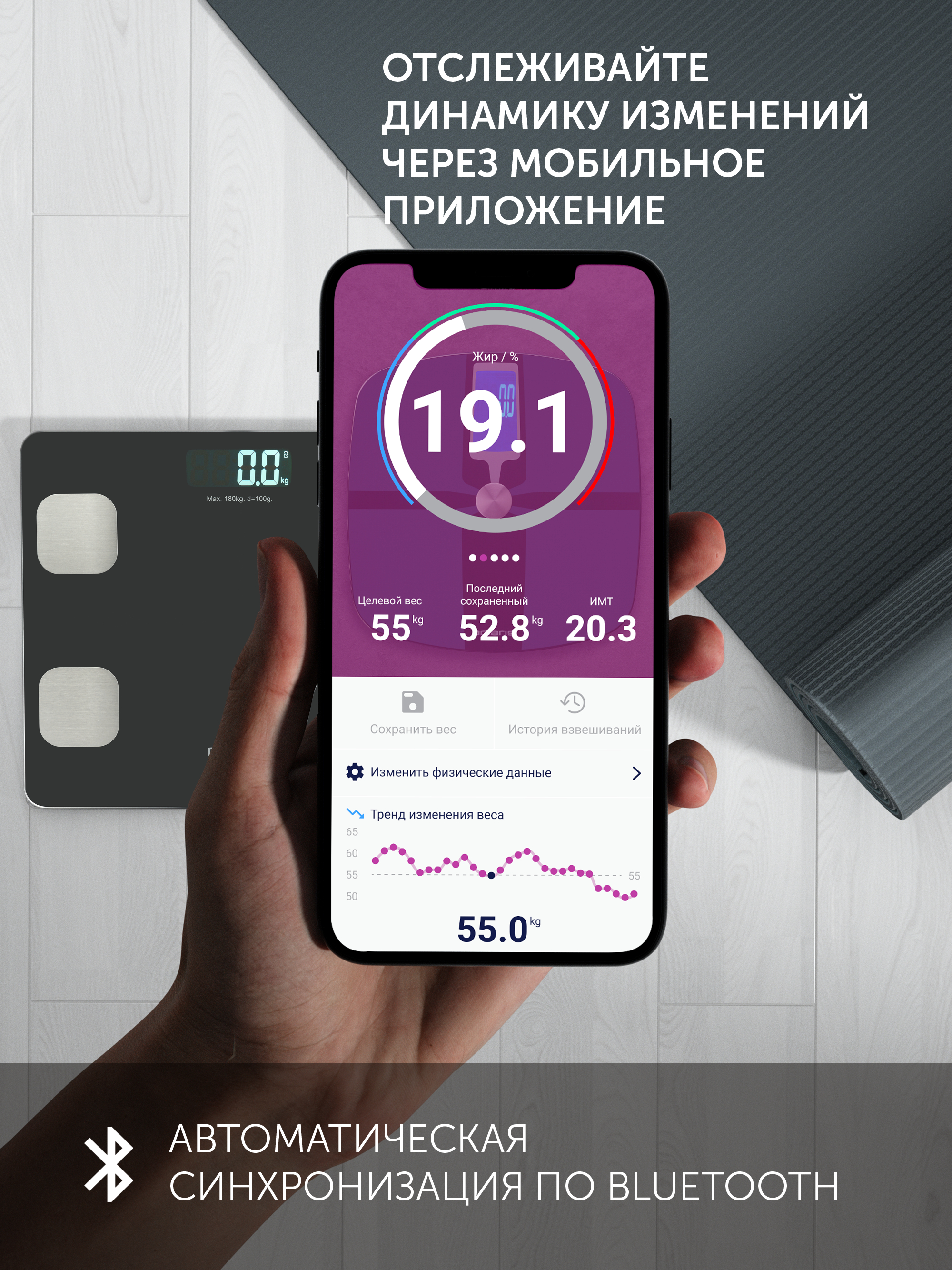 - Технические характеристикиСалмақтар типіПлатформа материалыӘйнек, ПластикBT 4.0 порты арқылы OS/Android синхронизациялау, Polaris Bodyfit тегін қосымшасы, жүктеу үшін қолжетімдіБар"Жасырын дисплей" технологиясыБарBMI коэффициентін, май массасын өлшеуБарАғзадағы судың, майдың, бұлшықет пен сүйек массасының деңгейін өлшеуБарБатарейкалар жиынтығыменБарКең платформаБарНәтижені автоматты нөлдеуБарСалмақты максималды дәл анықтауға арналған сенсорлық жүйеБарТүсіУльтра жұқаБарИндикацииБатареялар жұмысының индикациясыБарМаксималды салмақты арттыру индикациясыБарГабаритыНетто салмағы, кг1,17Жалпы салмағы, кг1,46Қорап өлшемдері, см49x288x345