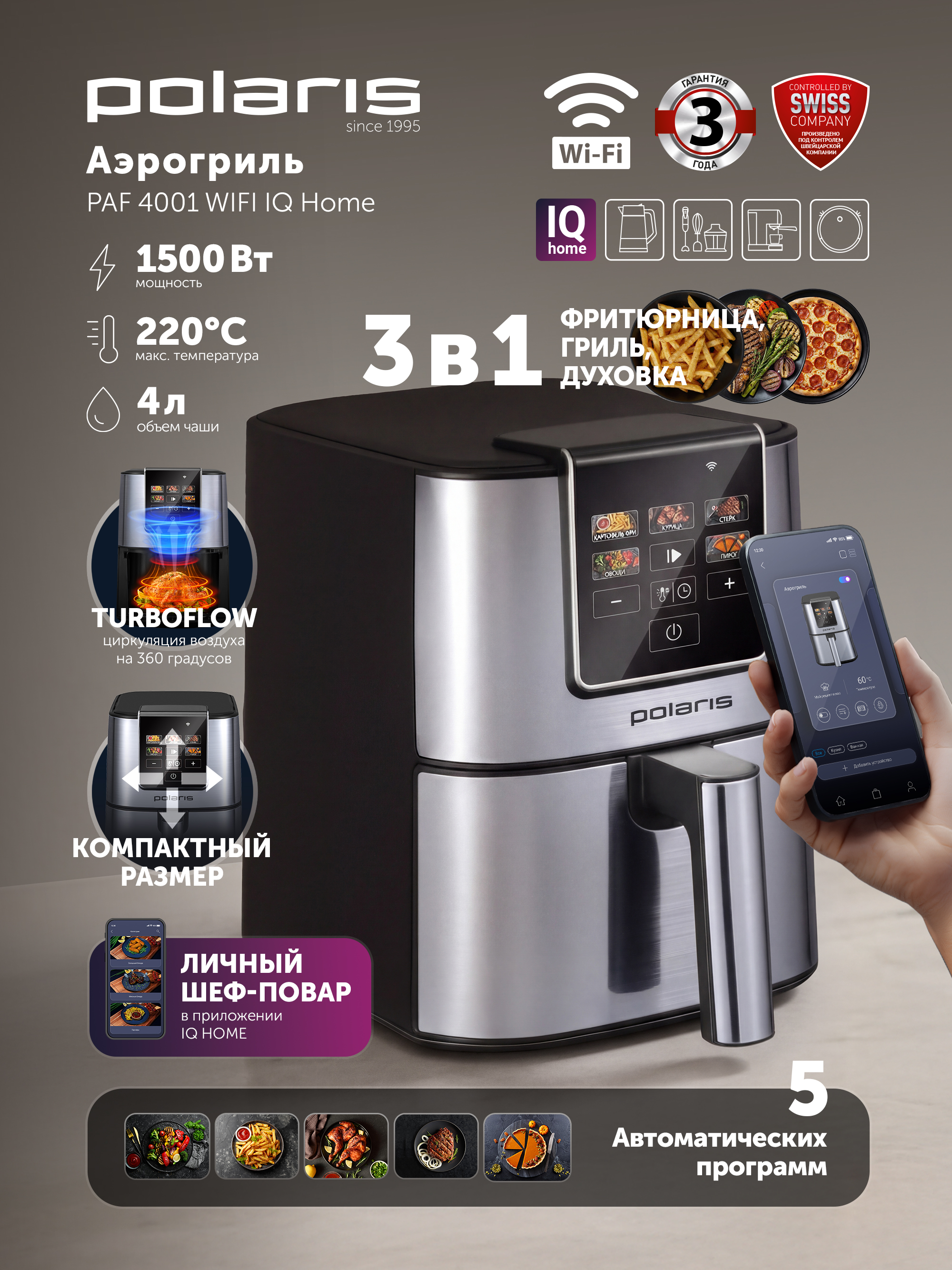 - СвойстваУправління зі смартфонаЄХарактеристкиВнутрішнє покриття чашіКількість автопрограм5Макс. температура нагріву, °С220Максимальний час встановлення таймера300Матеріал корпусуМетал, ПластикМін. температура нагріву, °С35Об'єм чаші, л4Потужність, В1500Програми приготуванняфритюр, запекание, выпечкаСистеми захистуТип нагрівального елементатэнТип управліннясенсорноеГабаритиВага нетто, кг3Вага брутто, кг4Габарити короба, см40,3x24,6x33,5Довжина шнура, см120