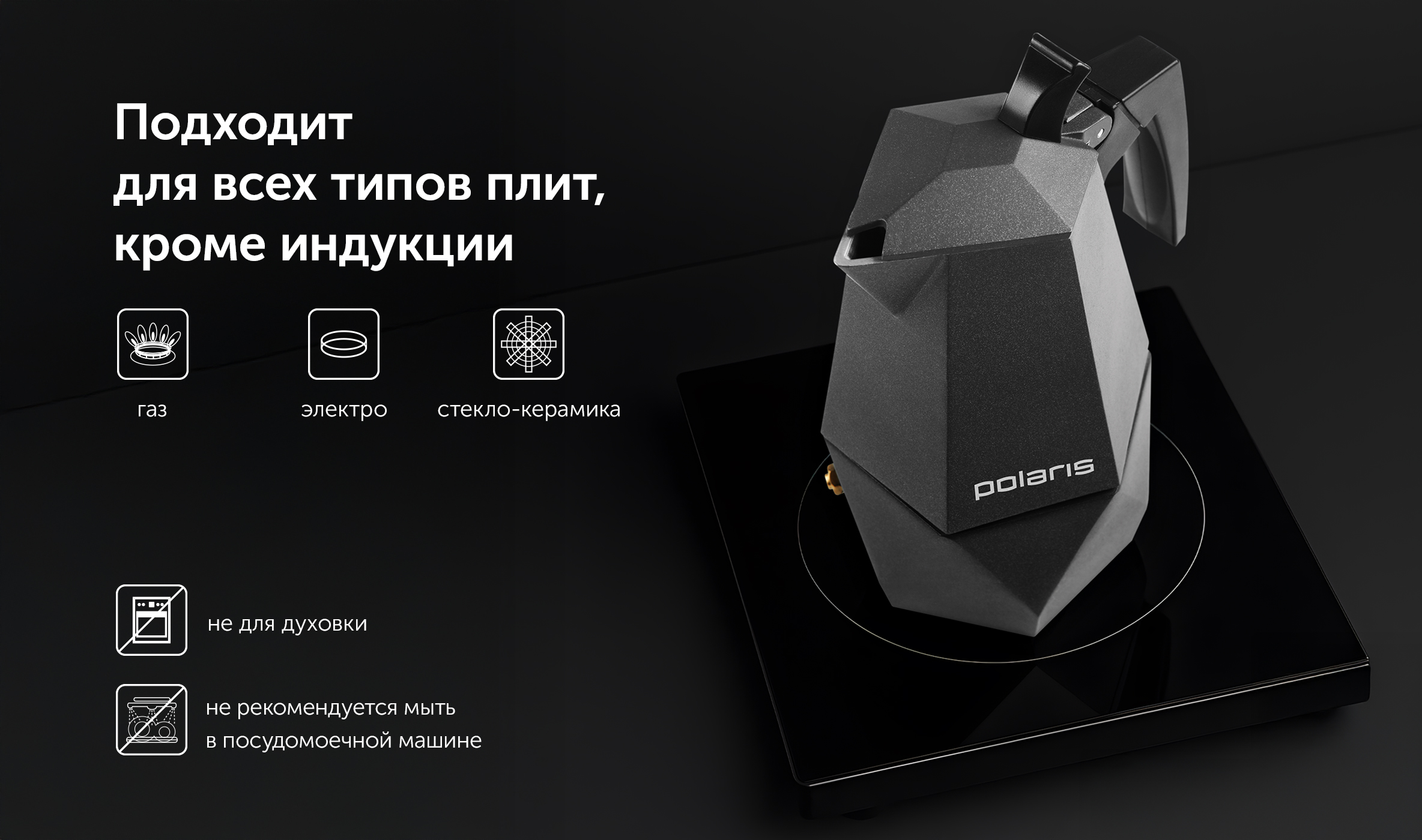 - Технические характеристикиМатеріалАлюмінійПідходить до всіх типів плит, крім індукційнихЄТипи плитВсе, крім індукційних