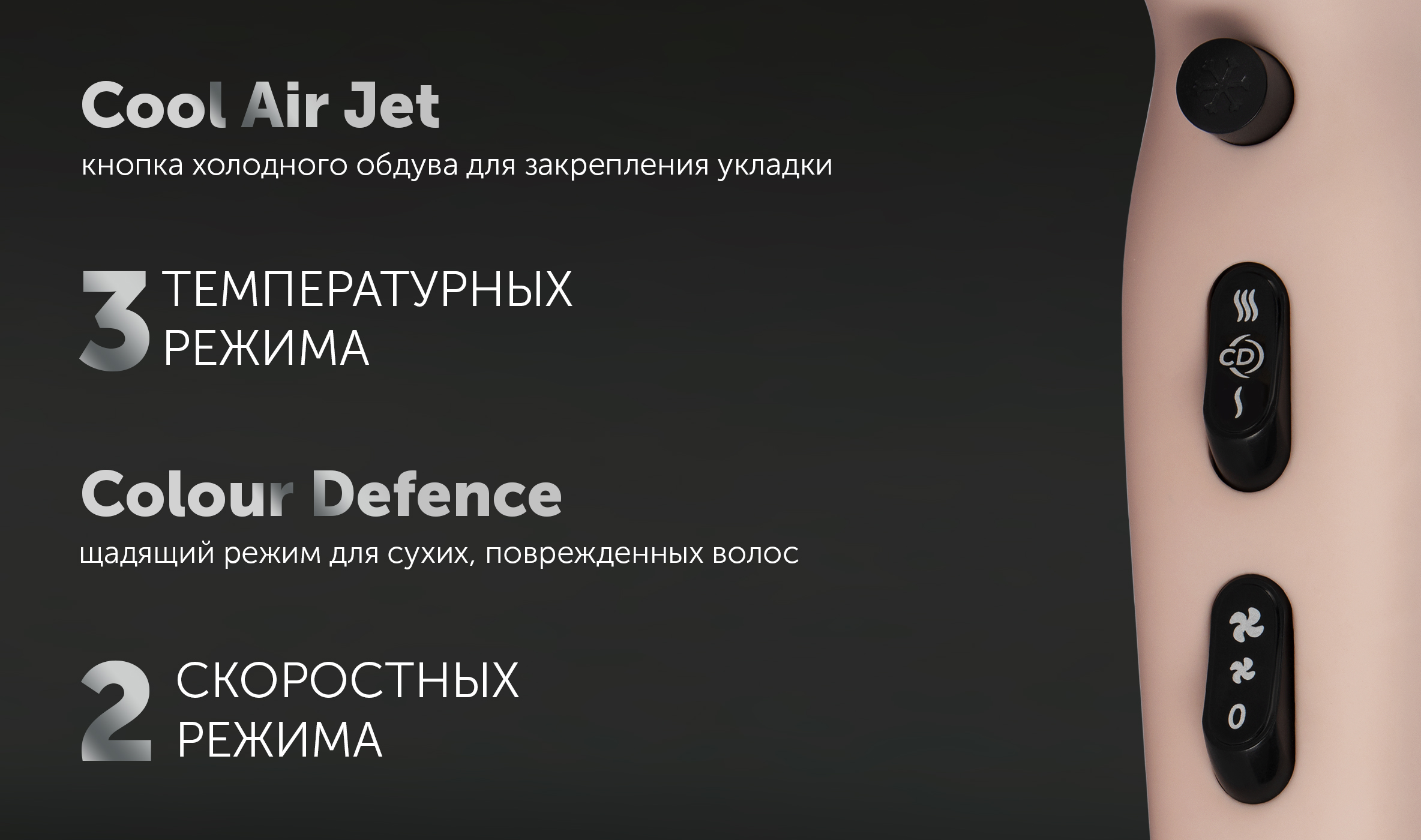 - Технические характеристикиПотужність, Вт2600Кількість температурних режимів3КонцентраторЄДифузорЄДовжина шнура3 мЗахист від перегріванняЄЗнімний фільтрЄЗручна петля для підвішуванняЄACКолірМ'яке, нековзне покриття корпусу Soft TouchЄЧохол для зберіганняЄГабаритыВага нетто, кг1Вага брутто, кг1Габарити короба, см25x10x31Колір200