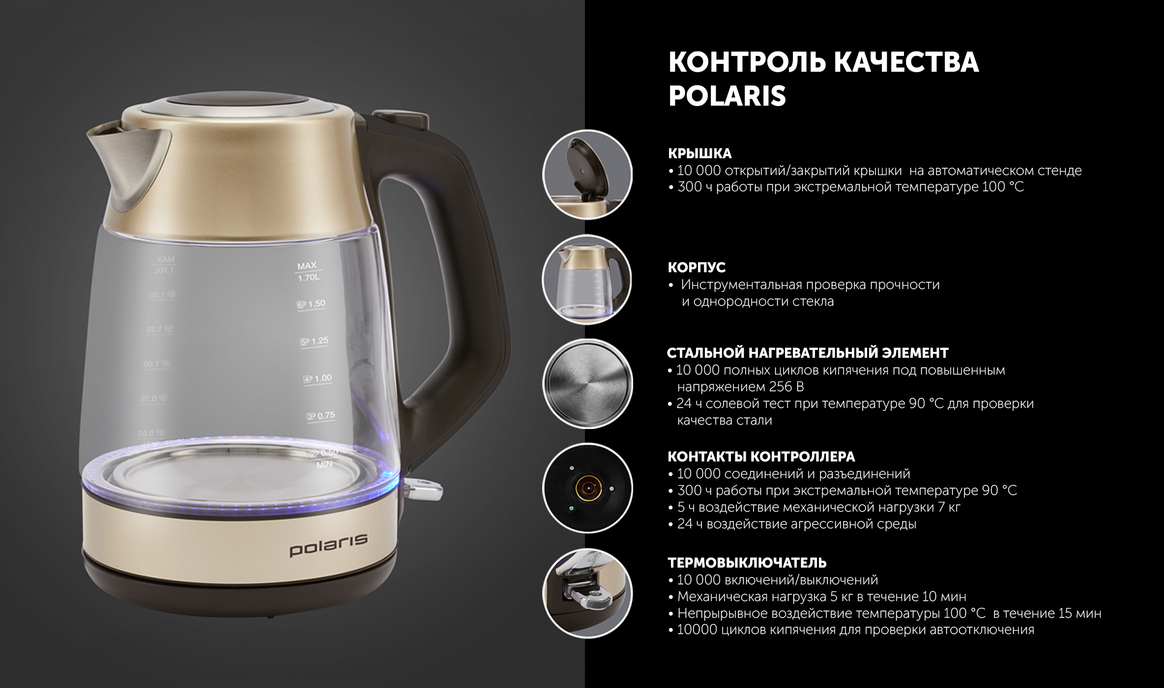 Симпатичный, стильный, тихий, выглядит качественно. Кот в восторге от подсветки и возможности смотреть на пузырькиКоментар:Достоинства: Удобный, качественный, не остаются на чайнике отпечатки пальцев.