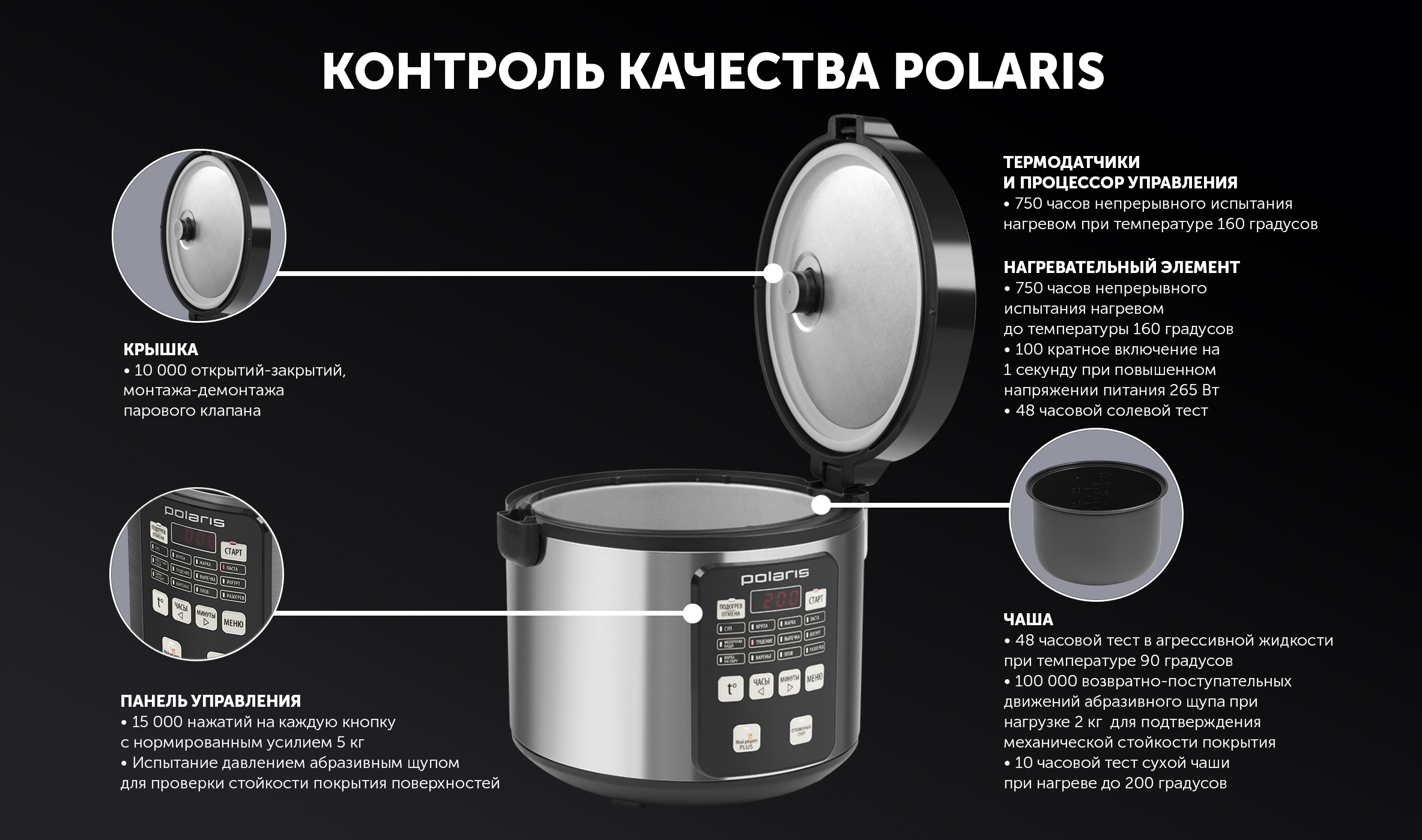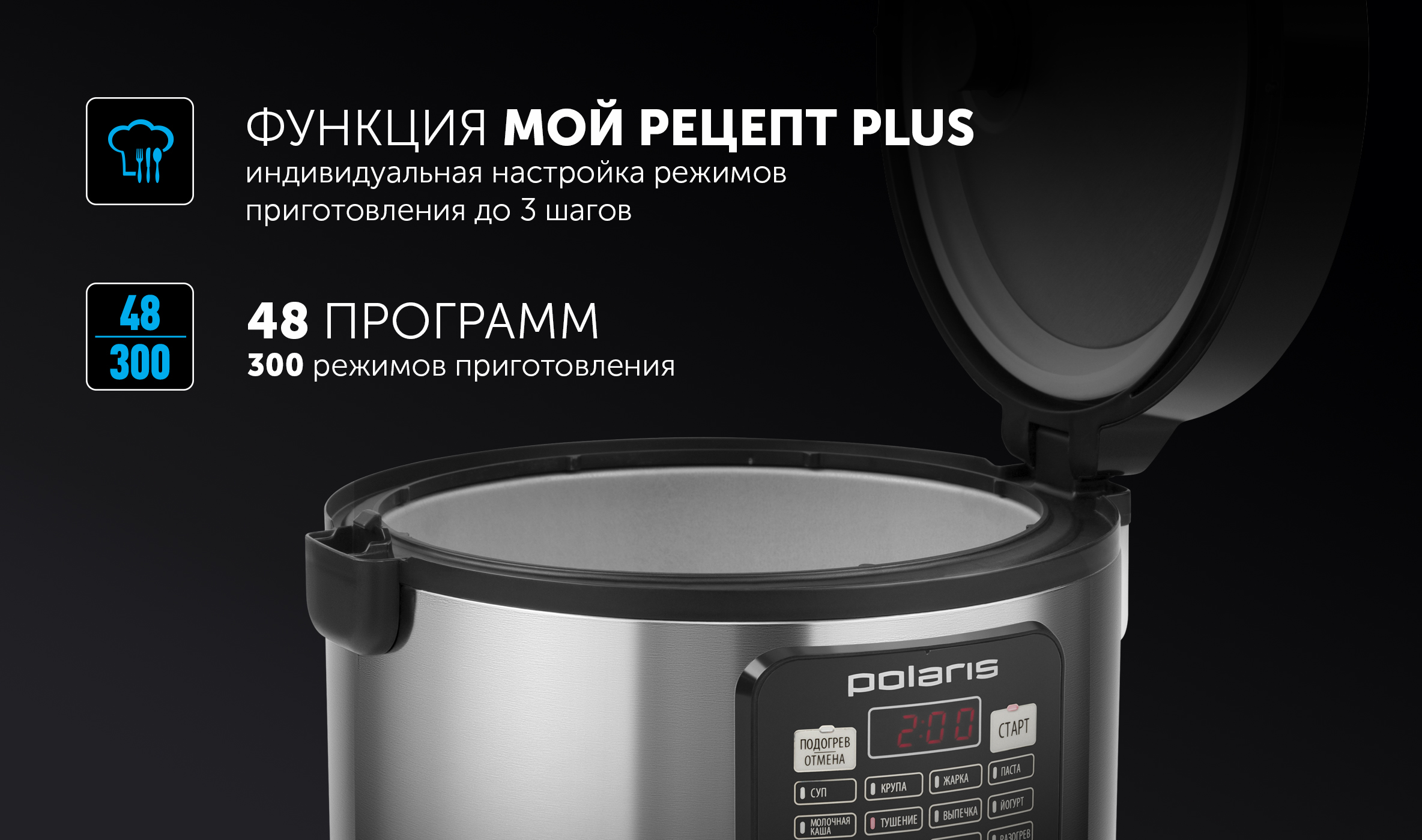 аккуратная и надёжная сборка, дизайн, хороший объём чаши, количество программ, в управлении всё понятно и просто, крышка открывается хорошо, долго держит тепло, комплектность, производитель даёт гарантию