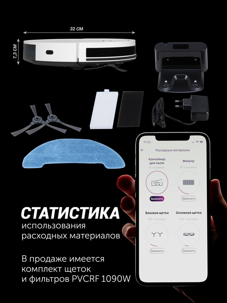 - ГабаритыВага нетто, кг3Вага брутто, кг5Габарити короба, см11x56,8x36,5Колір1,5ХарактеристикиТип збираннясухая и влажная30Бічні щітки2Потужність, Вт30КолірбелыйСвойстваУправління по Wi-FiЄЄІнфрачервоні датчики для орієнтації в приміщенніЄНЕРА фільтрЄПлоский корпус для зручності прибирання під меблямиЄАвтоматичне повернення на базуЄПовністю автоматична прибиранняЄамортизуючі колесаЄСкляна верхня панельЄВологе прибиранняЄБічні щітки для ефективного прибиранняЄПобудова карти приміщенняЄРасписание уборкиЄ